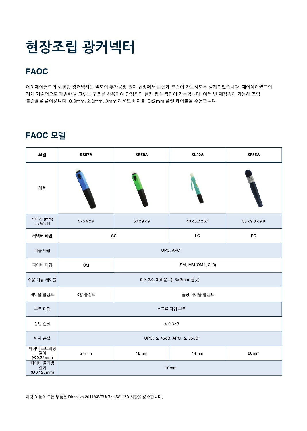 FAOC LS40A 현장조립형 광커넥터 OM3 LC/PC 3.0mm 국산