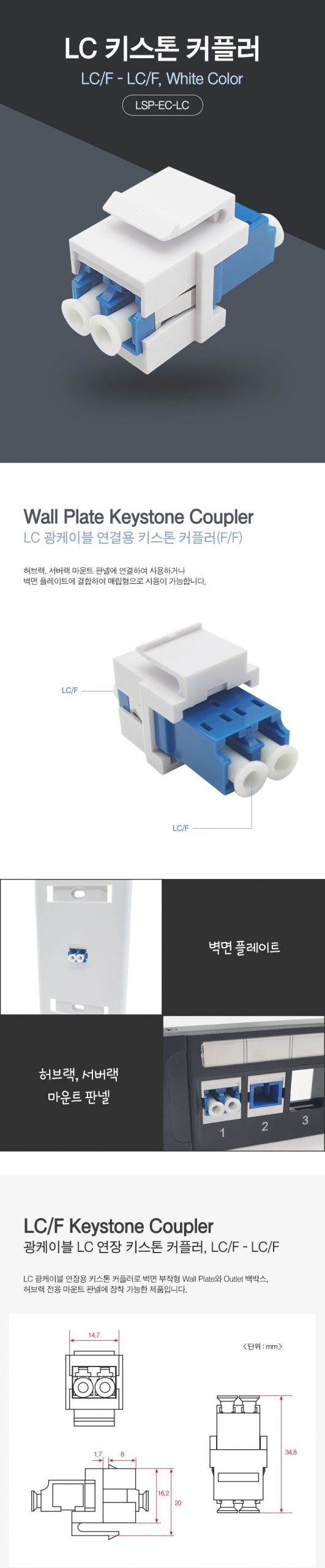 광키스톤 커플러 + LC/PC 아답터 포함(2코어), 광아울렛 플레이트 삽입용