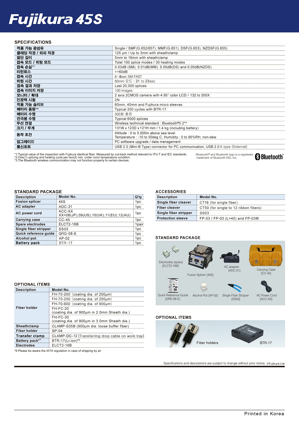 후지쿠라 광접속기 45S (후지쿠라 광섬유절단기 CT16 포함) NEW