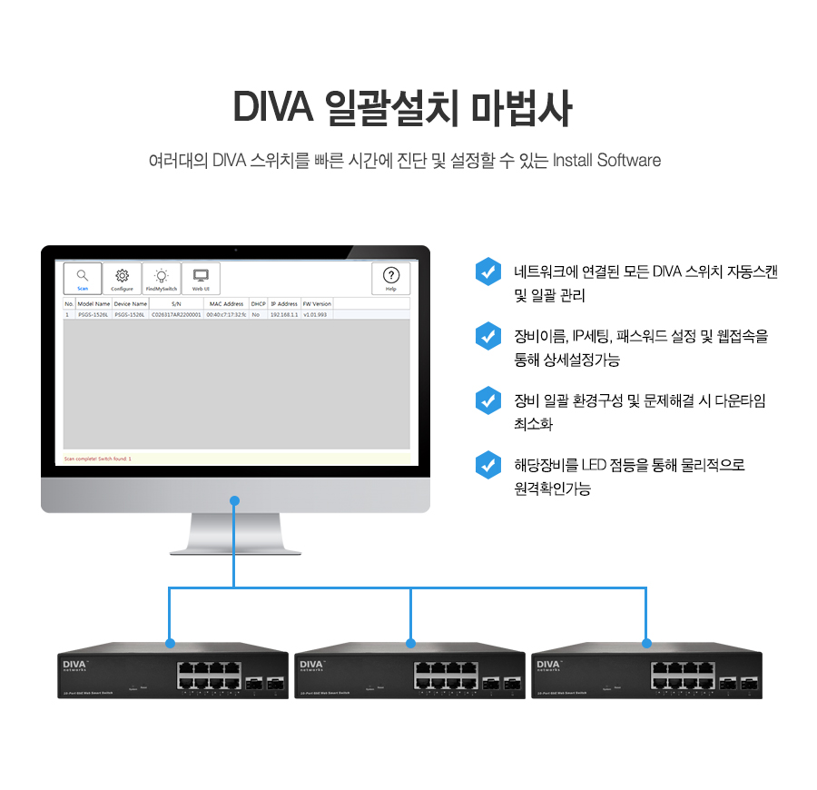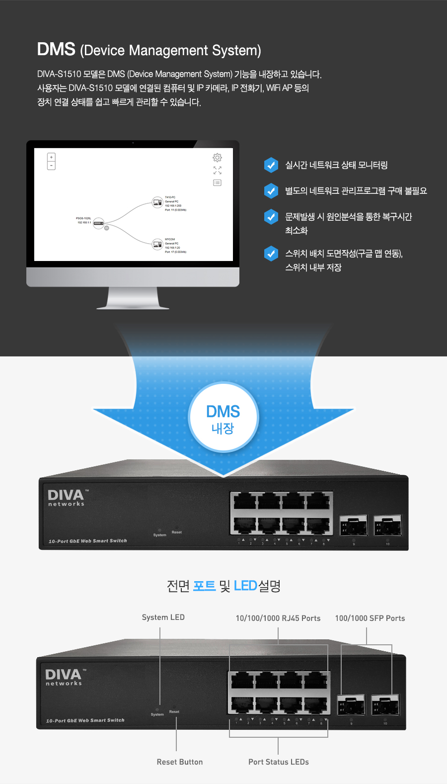 L2 기가 이더넷 스위치/ Web Smart Managed/ DIVA-S1510