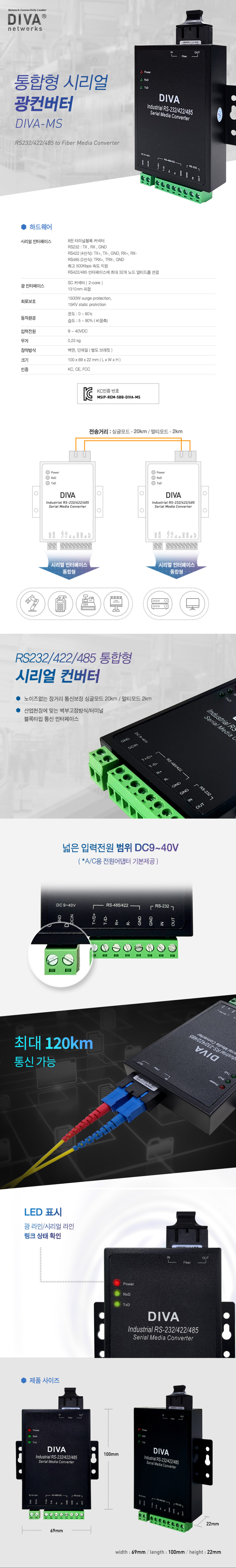 *Plug-and-Play * 1쌍=2개 *DIVA-MS-MM *RS232/422/485 시리얼 포트 1개 *멀티모드 광 인터페이스 1개 *2 킬로미터 통신 거리