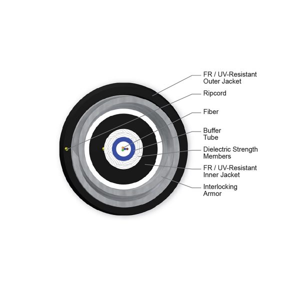Corning FREEDM® LST™ gel-free interlocking armored cables are flame-retardant, indoor/outdoor, riser-rated cables designed for interbuilding and intrabuilding backbones in aerial, duct and riser applications. Encased in a spirally wrapped, aluminum interlocking armor for ruggedness and superior crush resistance, these cables are ideal for industrial and heavy traffic areas and installations requiring extra protection for optical cables and for high-fiber-count trunking applications in areas with limited conduit or vault space. The riser rating precludes the need for a transition splice when entering the building.