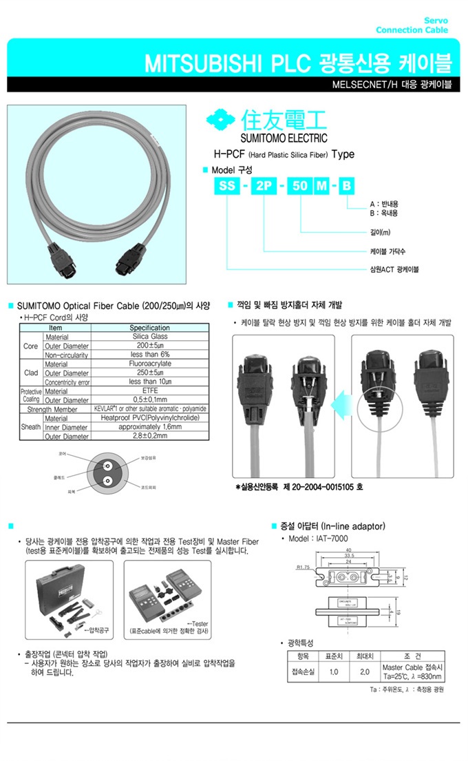 스미토모 2-FOD-V (H-PCF) 케이블 스미토모 DL-72 커넥터 미쯔비시 PLC/MELSECNET 장비용