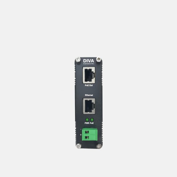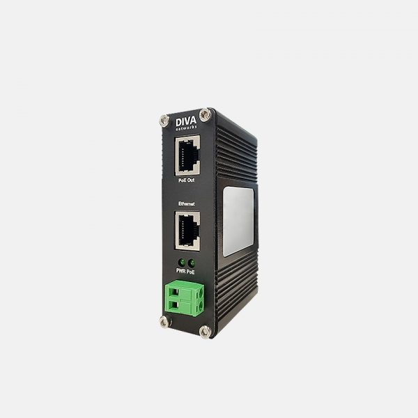 DIVA-IPoEI 산업용 PoE 인젝터는 -40 ~+80℃ 동작하는 산업용 규격의 PoE 인젝터로 기가비트 이더넷을 지원하며, IEEE 802.3 af/at 사양을 지원합니다. 전원아답터 별도