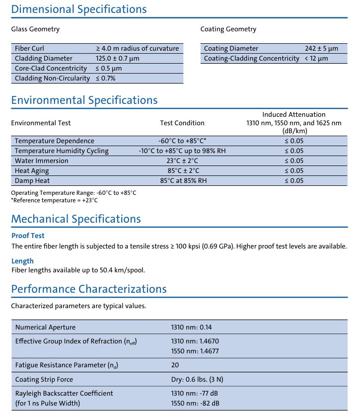 코닝 더미 베어 광케이블 bare fiber 2km 싱글모드 (G.657.A2) ClearCurve® LBL Fiber