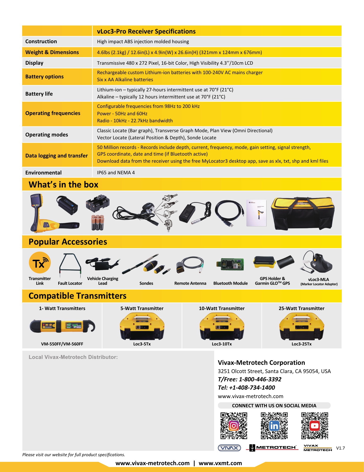 Vivax-Metrotech vLocPro3 (수신기) Loc3_5Tx (송신기) 관로 지하매설물 탐지기